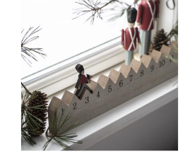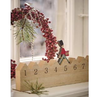 Calendrier de l'avent en bois avec décor garde de noel. dim : 75 x 2.5 x h7.5 cm